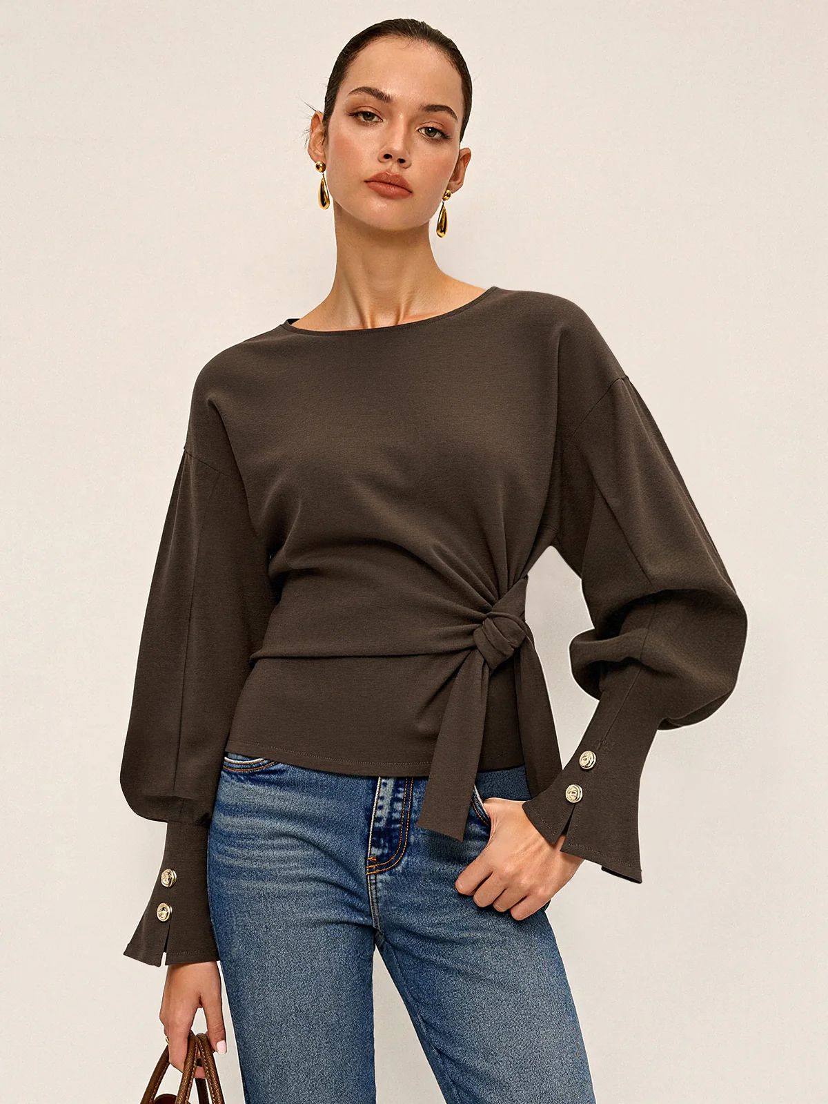 Twist Knot Balloon Sleeve Sweatshirt